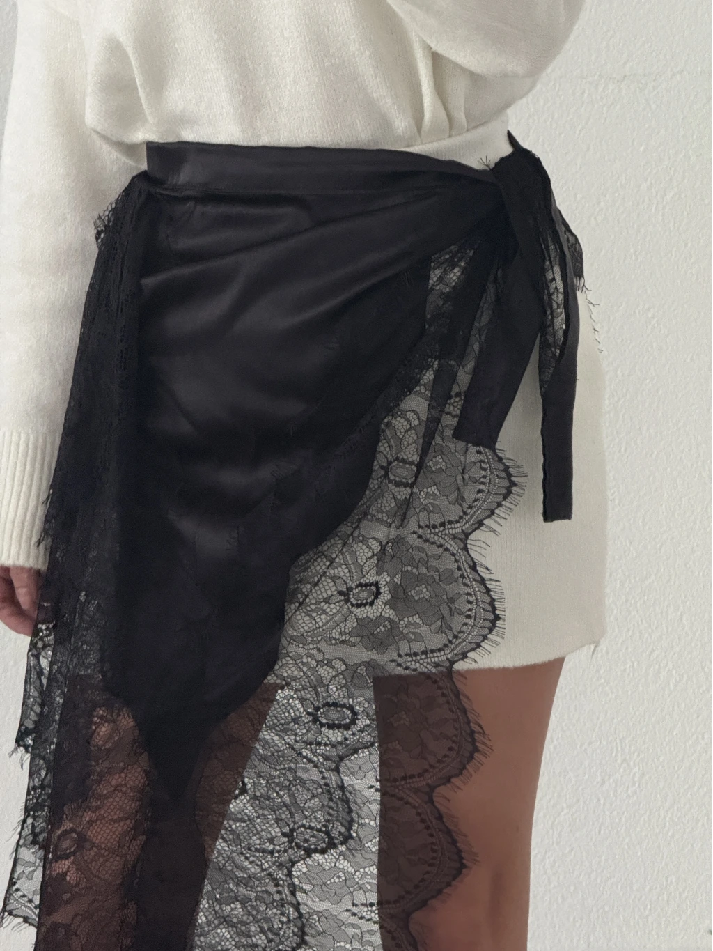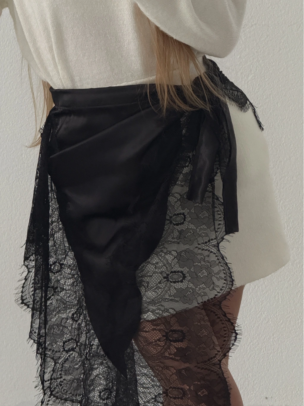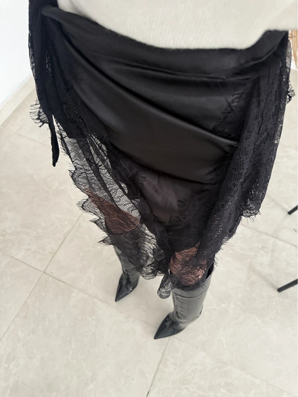 Asimetrik formu, dantel detayları ve saten kumaşı ile tasarlanan bu bel aksesuarı; elbise ve etek kombinlerine modern, iddialı bir dokunuş kazandırır. Bağlamalı yapısı sayesinde farklı beden ve stillere kolayca uyum sağlar; kombininize tek parçada güçlü bir görünüm katar.