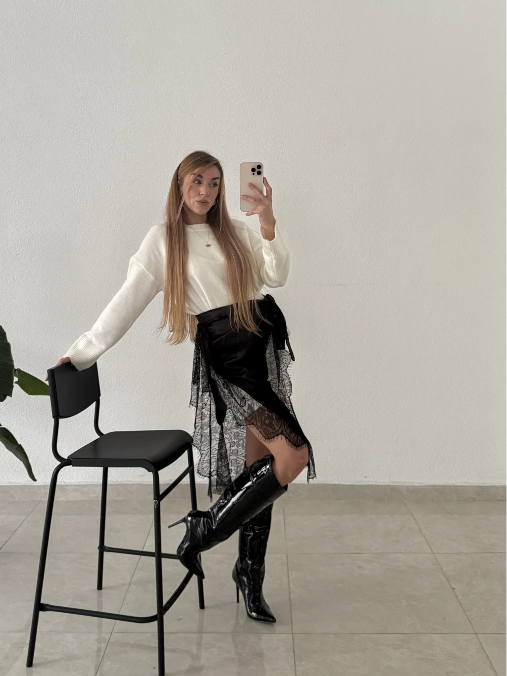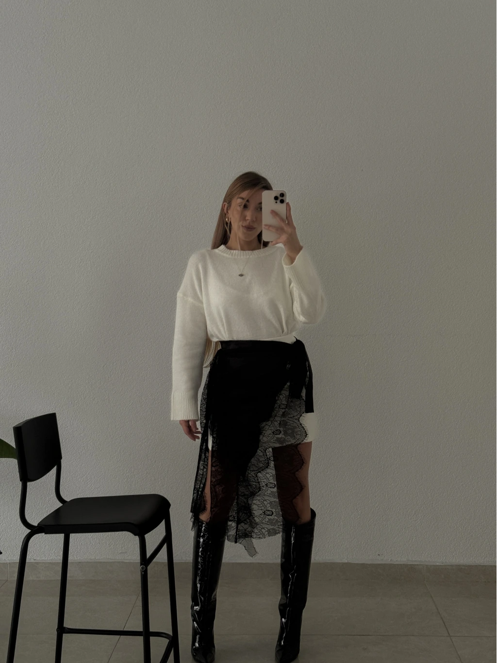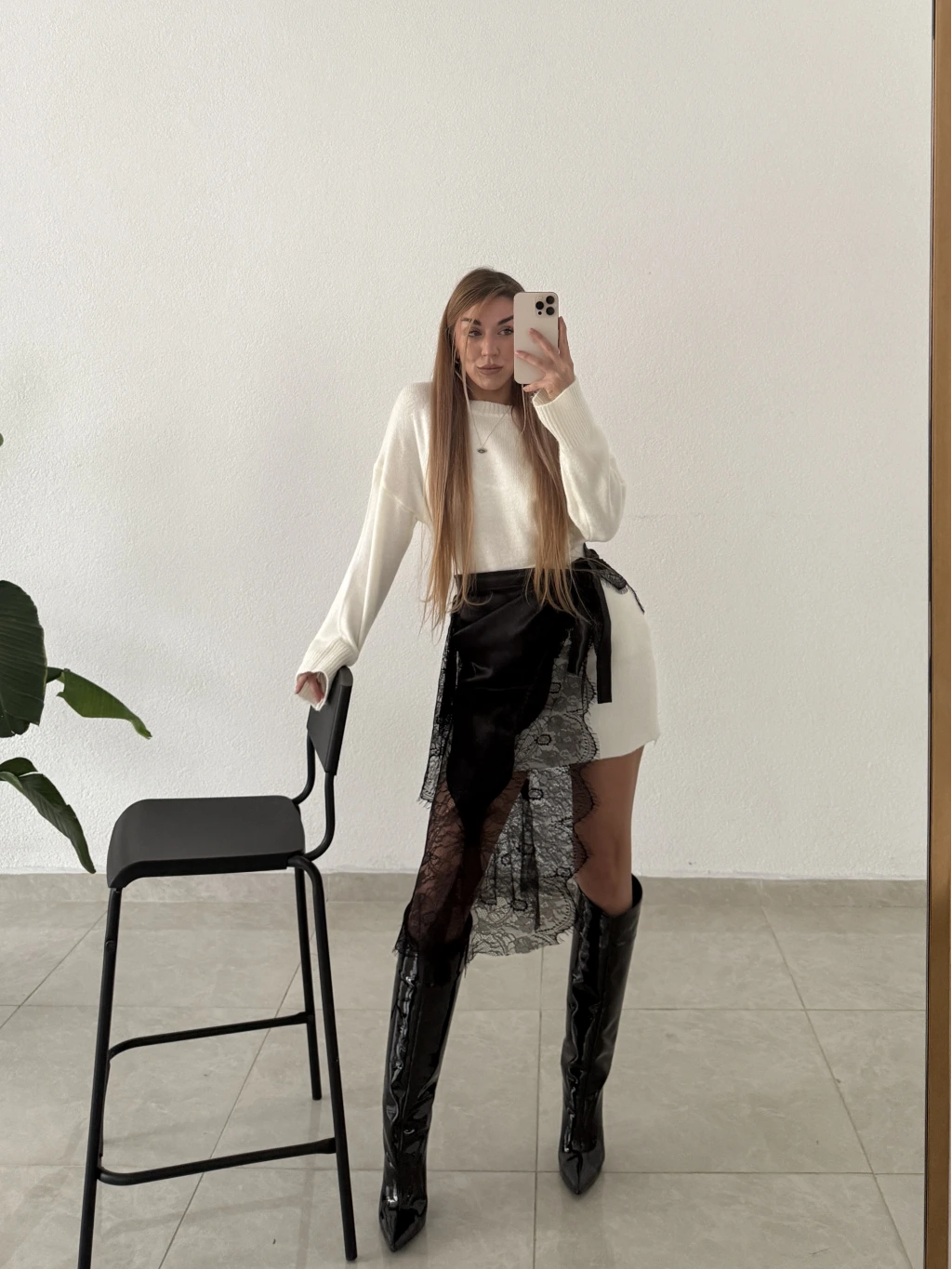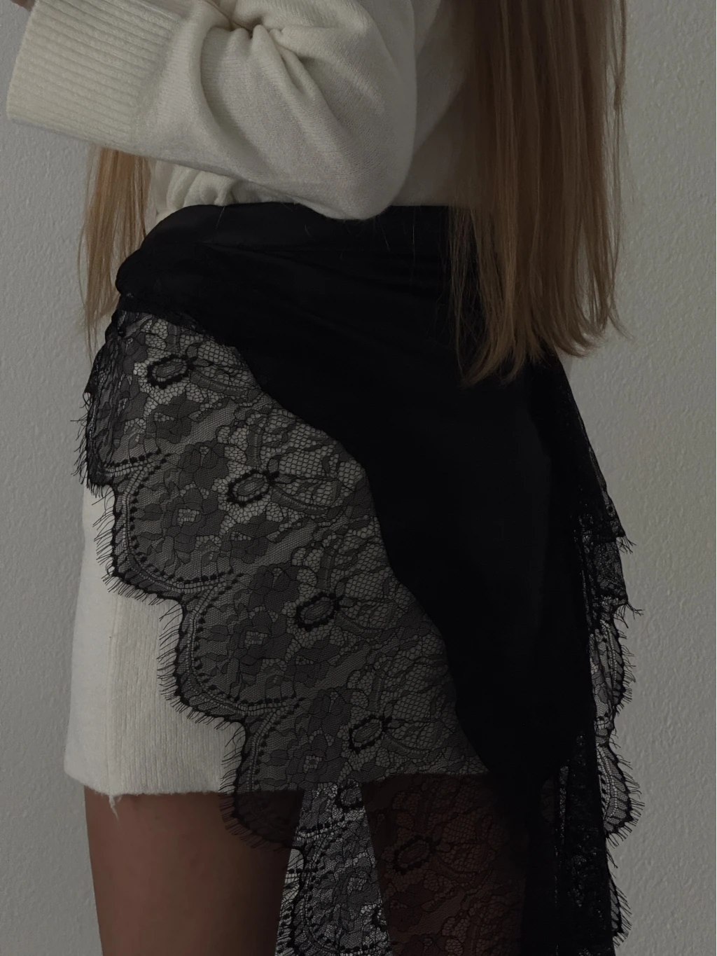 Asimetrik formu, dantel detayları ve saten kumaşı ile tasarlanan bu bel aksesuarı; elbise ve etek kombinlerine modern, iddialı bir dokunuş kazandırır. Bağlamalı yapısı sayesinde farklı beden ve stillere kolayca uyum sağlar; kombininize tek parçada güçlü bir görünüm katar.