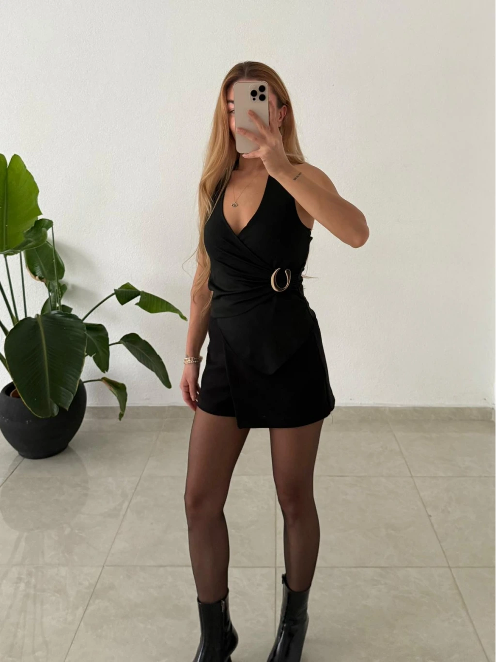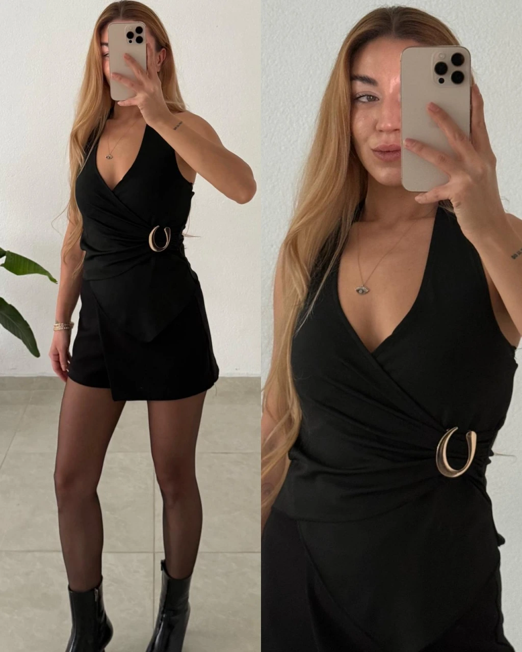 • Asimetrik kruvaze yaka tasarımı ve boyundan geçmeli aksesuar detayıyla modern ve zarif bir görünüm sunar. Günlük kombinlerden özel davetlere kadar şıklığını tamamlar.