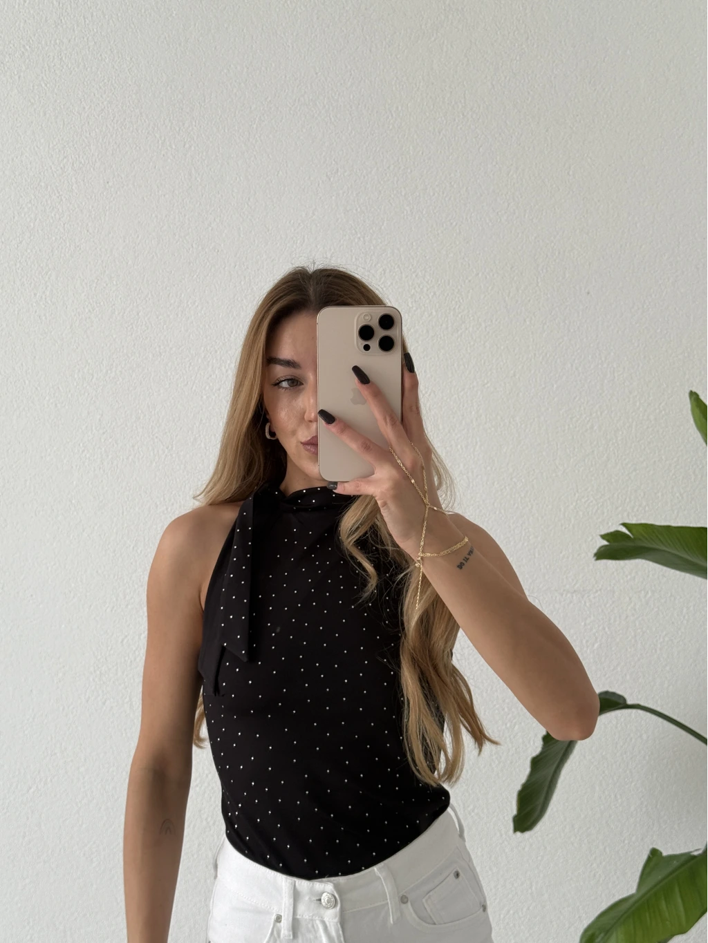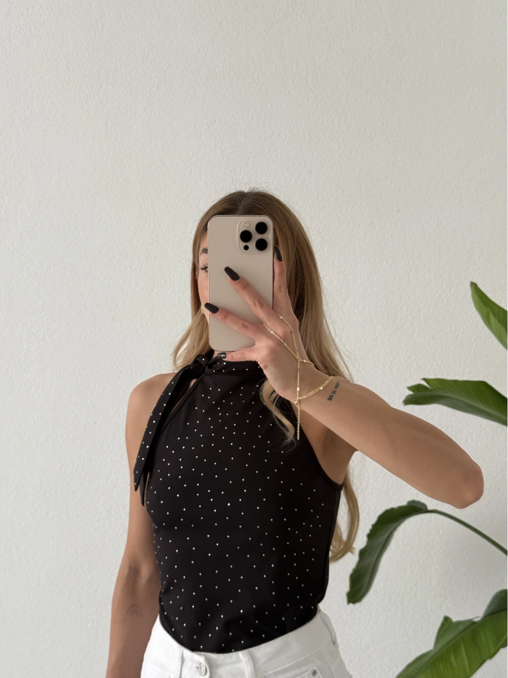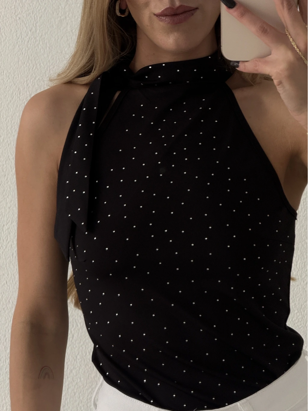 Boyundan Bağlamalı Taşlı Bluz