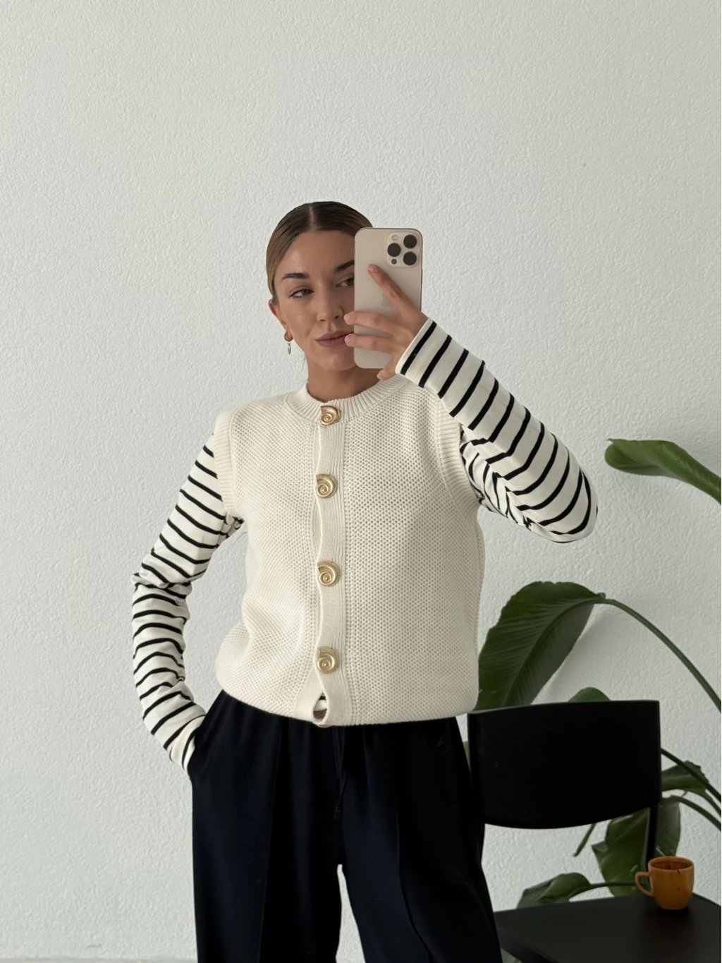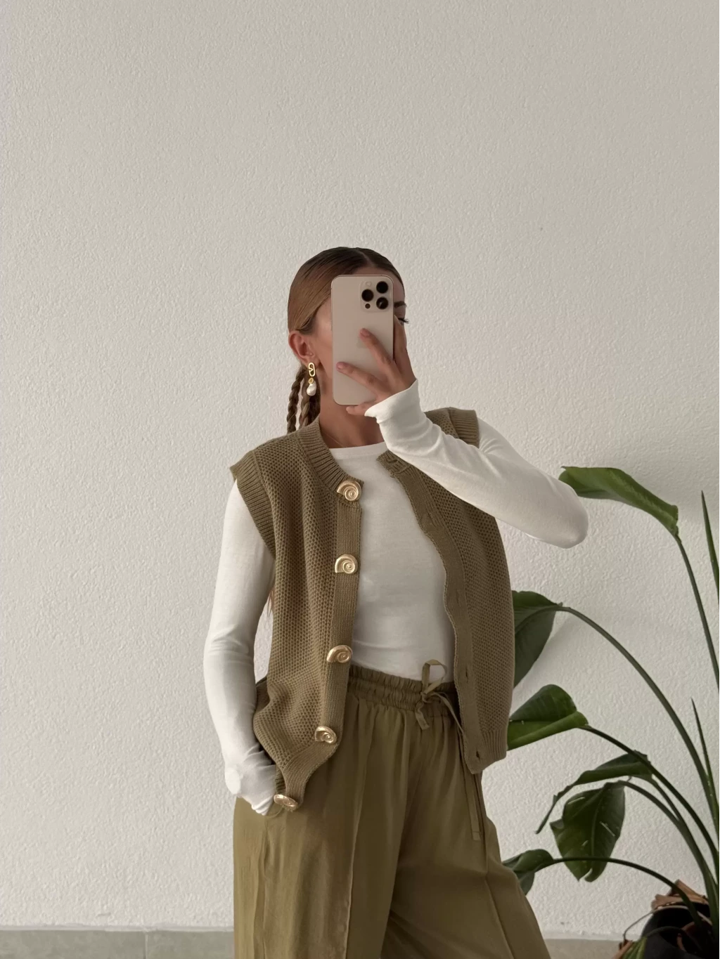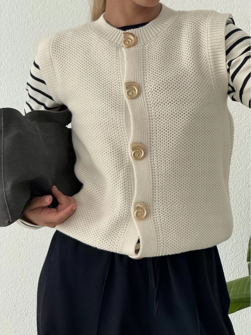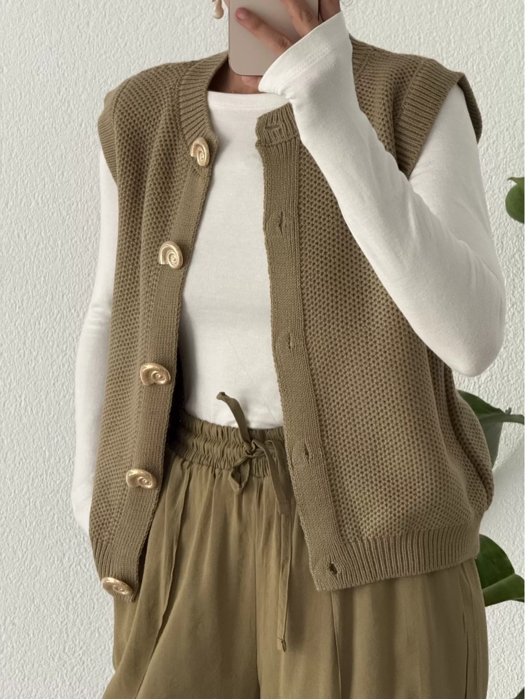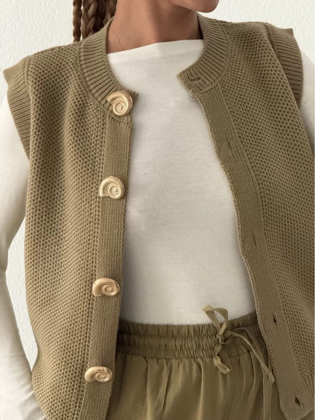 Deniz Kabuğu Düğme Detaylı Triko Süveter