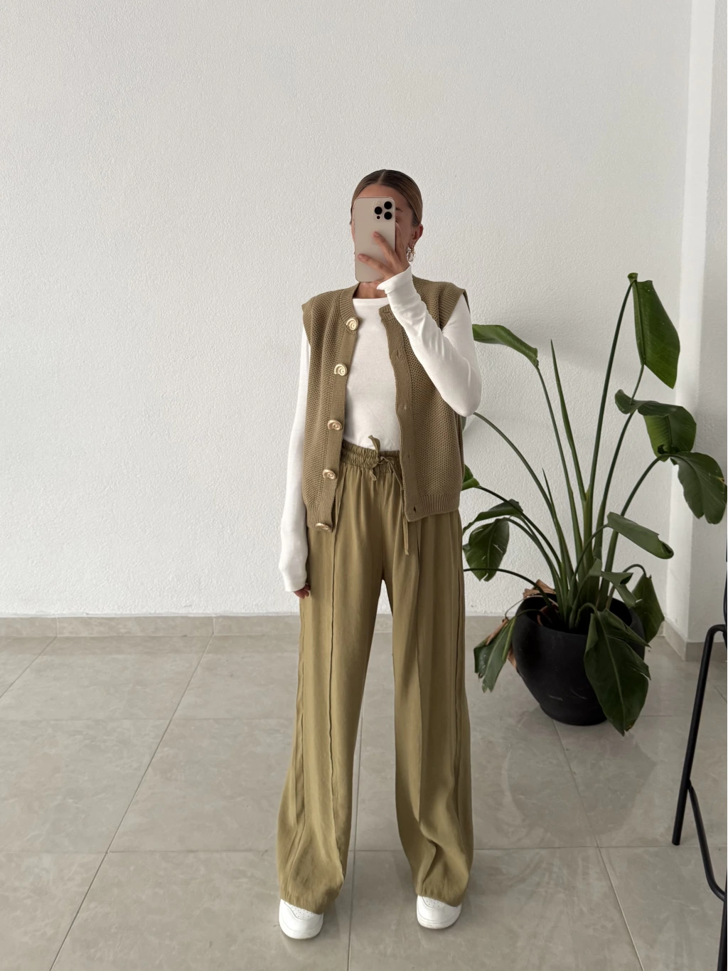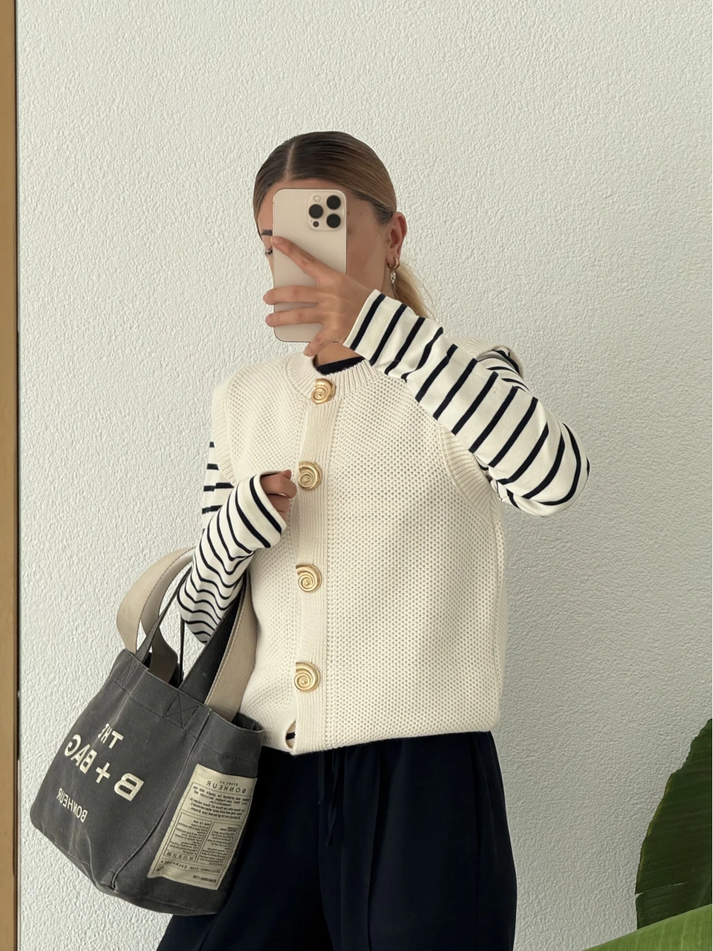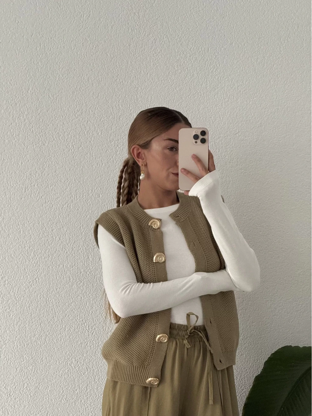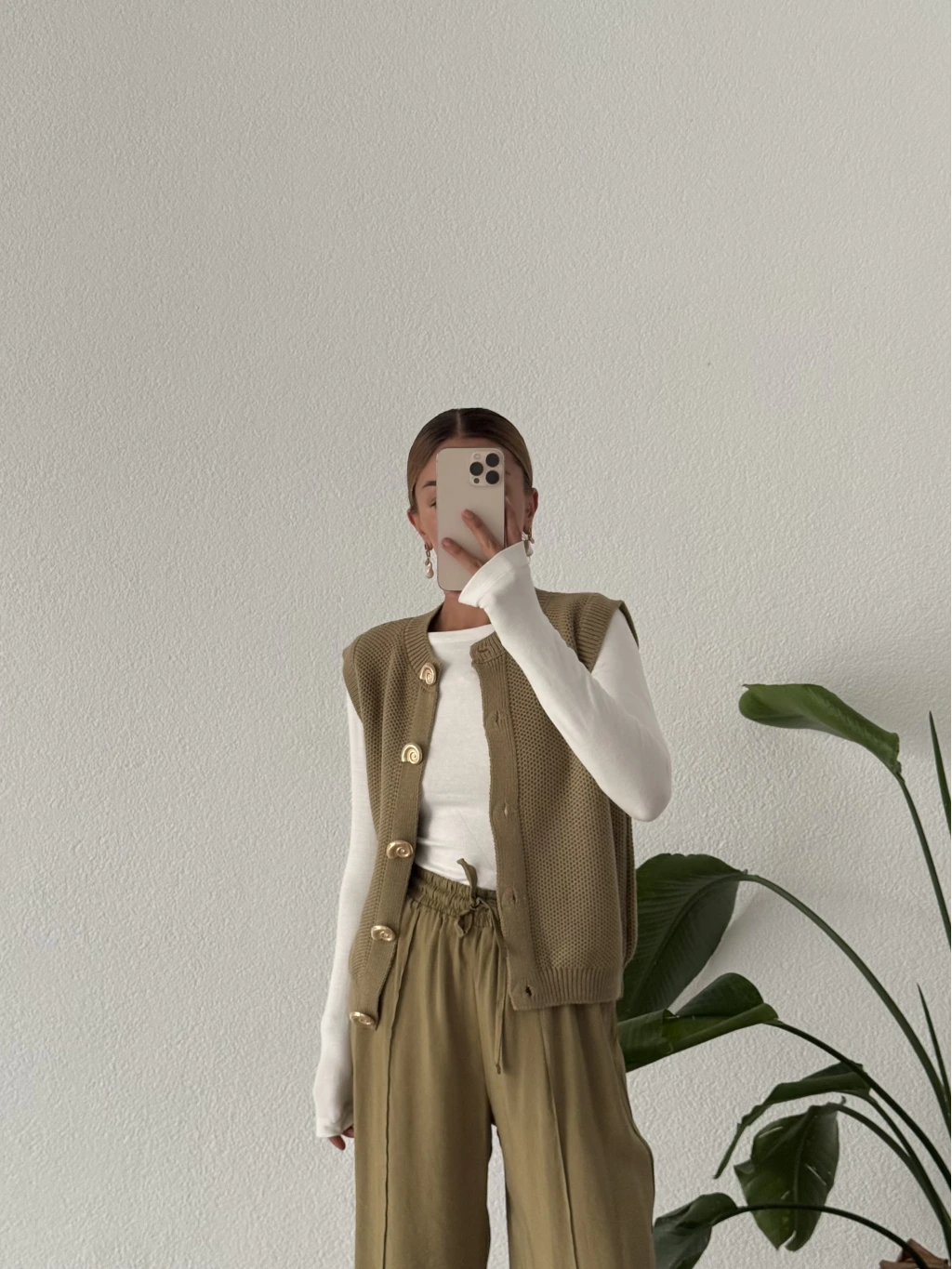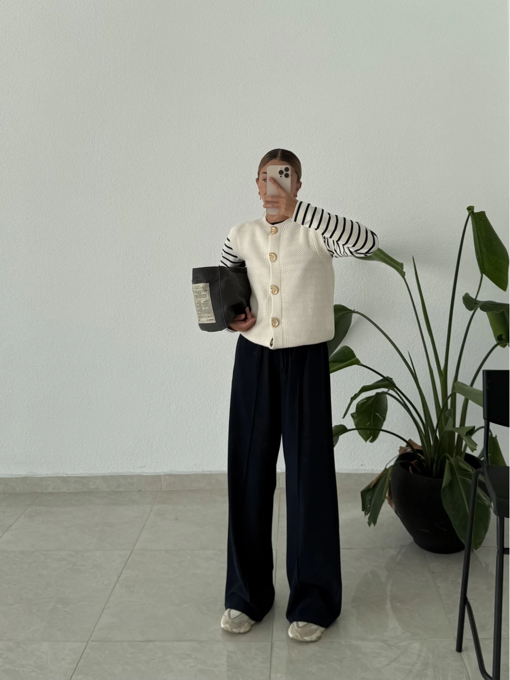 Deniz Kabuğu Düğme Detaylı Triko Süveter