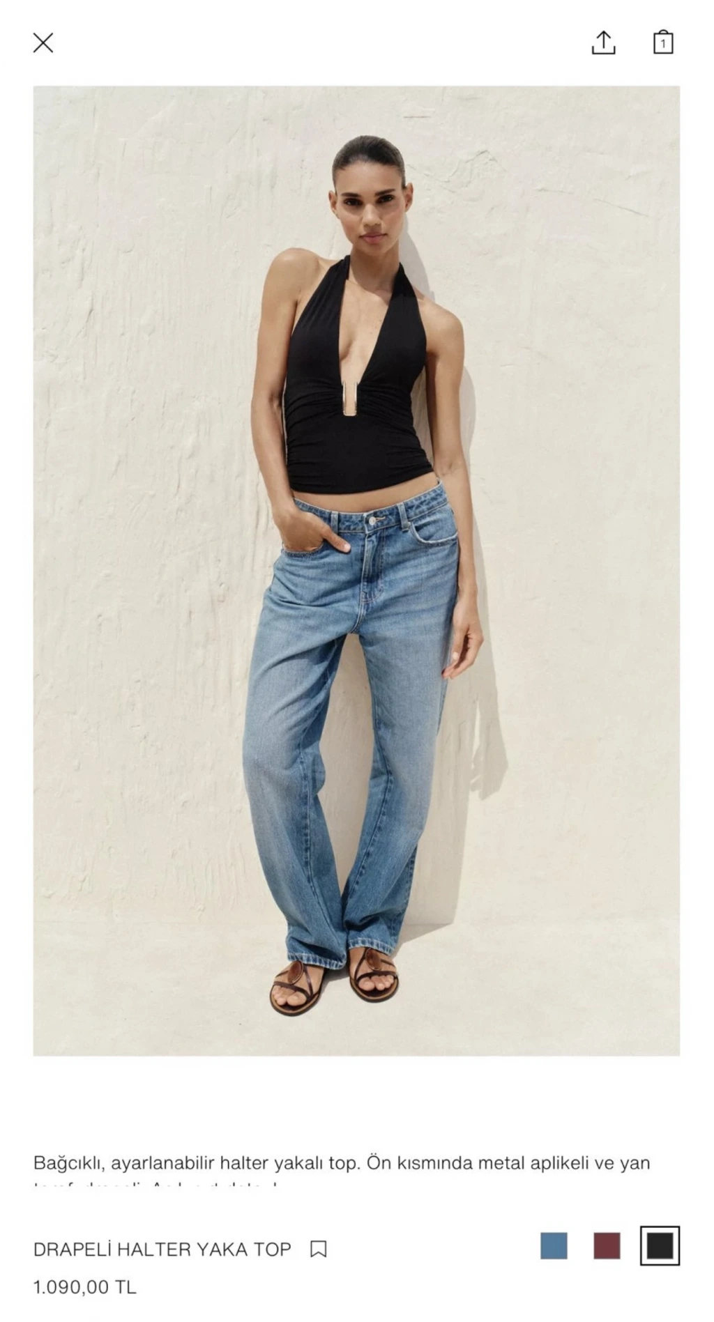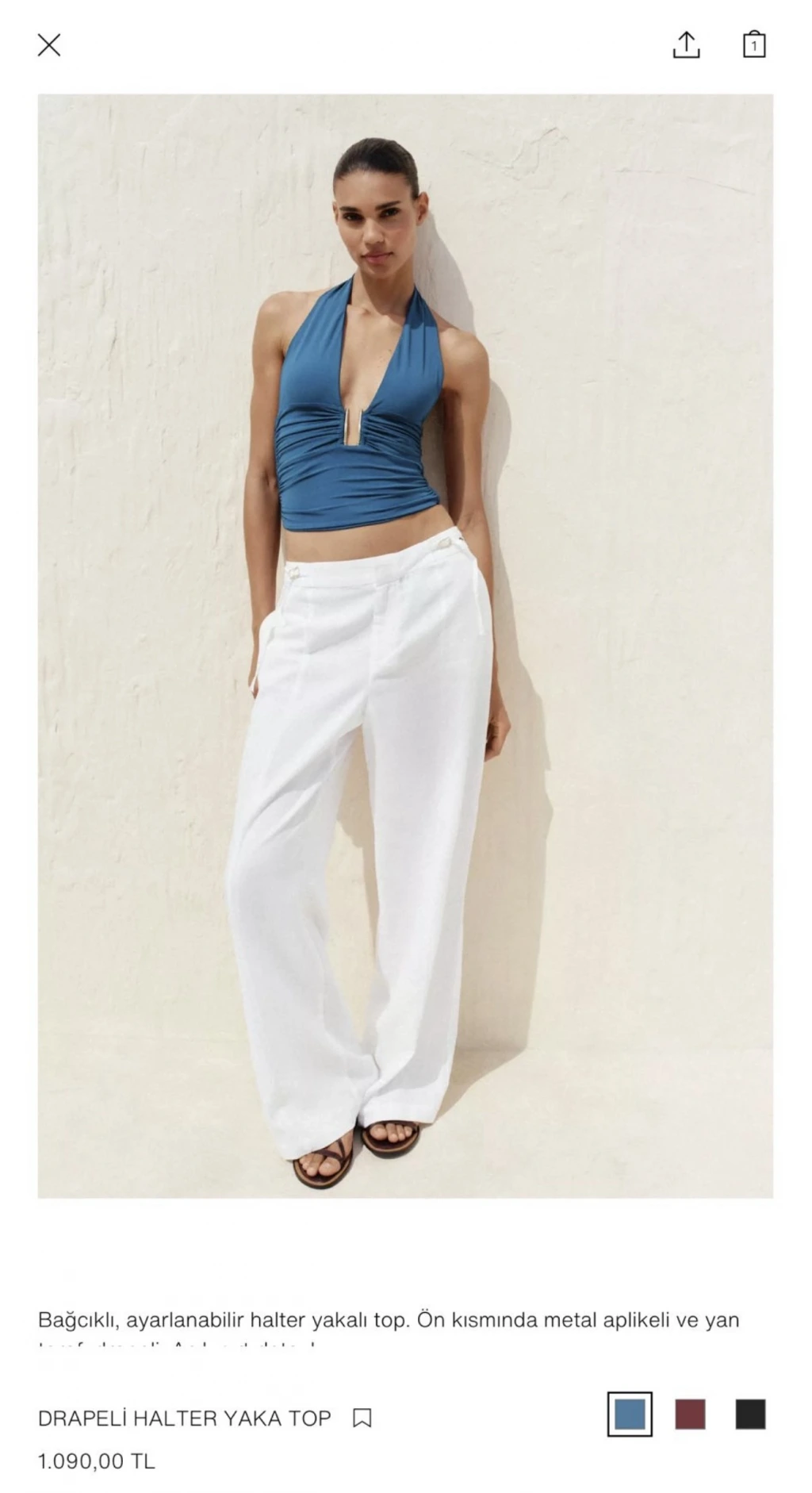 Drapeli Halter Yaka Aksesuarlı Crop Top