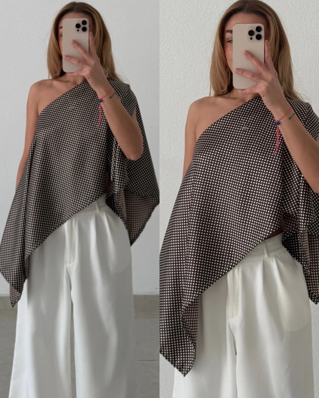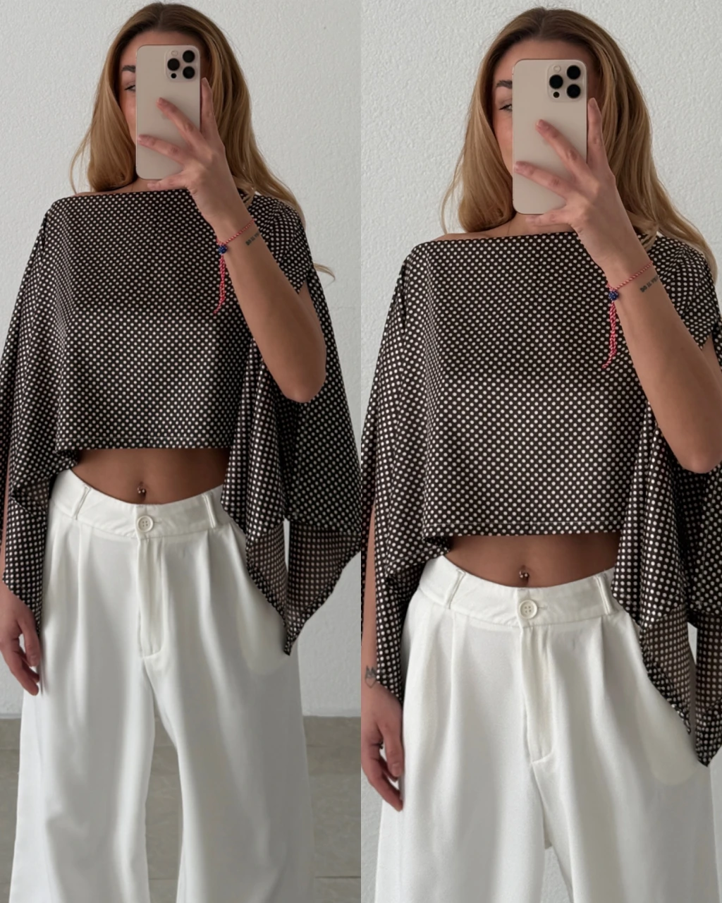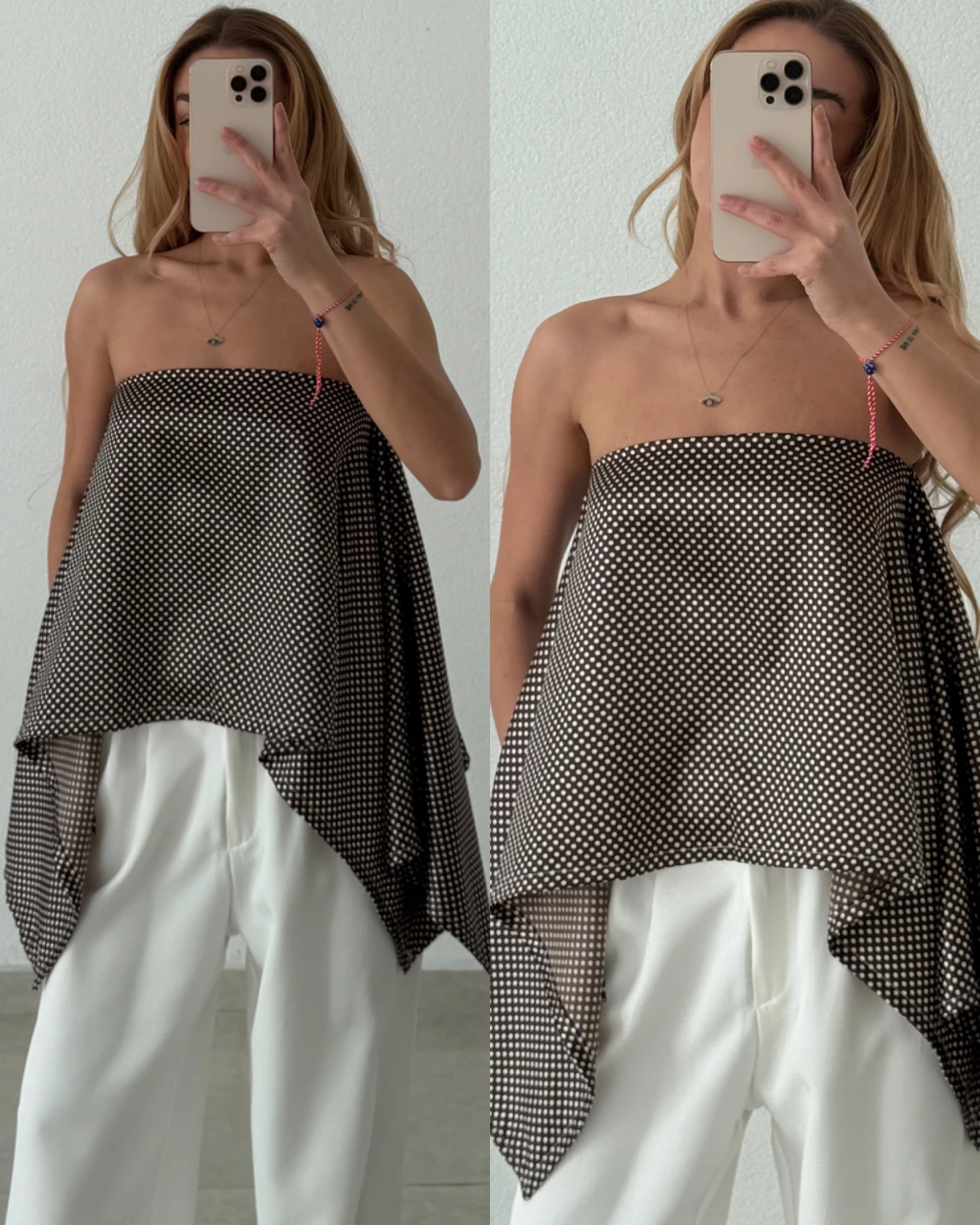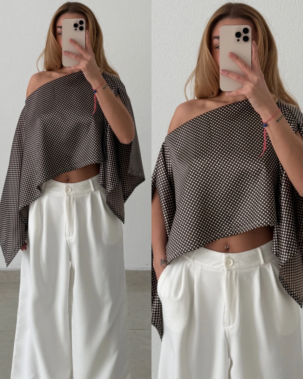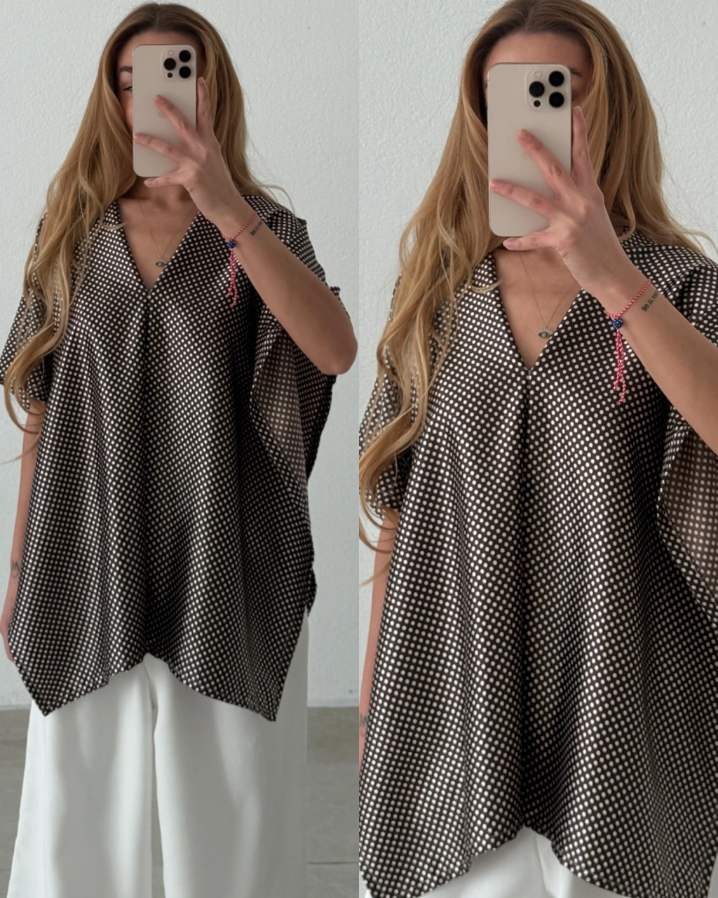 İpek Saten Puantiyeli Bluz