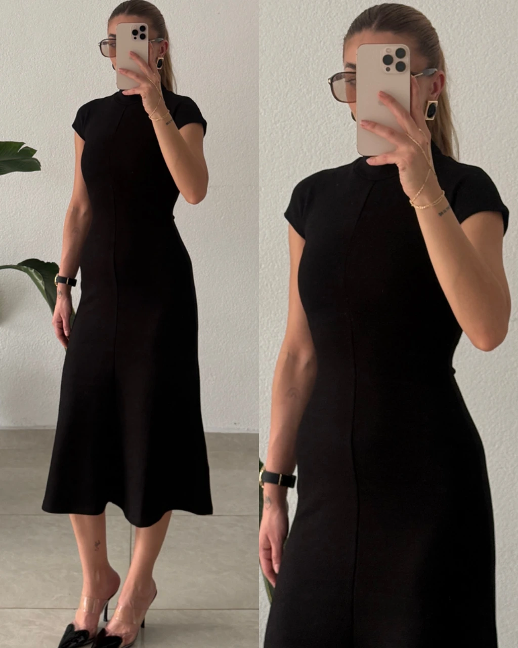 Eteği Belden Açılan Bel Oturtmalı Midi Boy Elbise