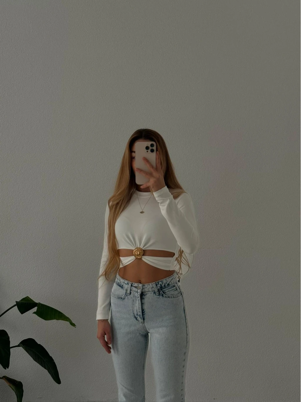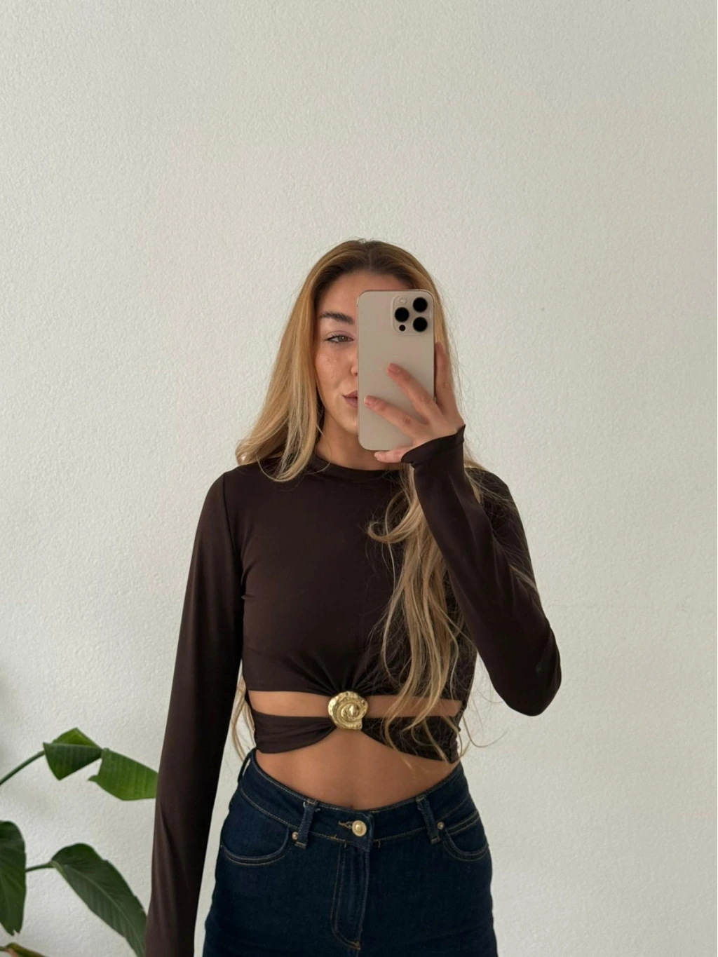 Pencereli Salyangoz Aksesuarlı Uzun Kollu Crop