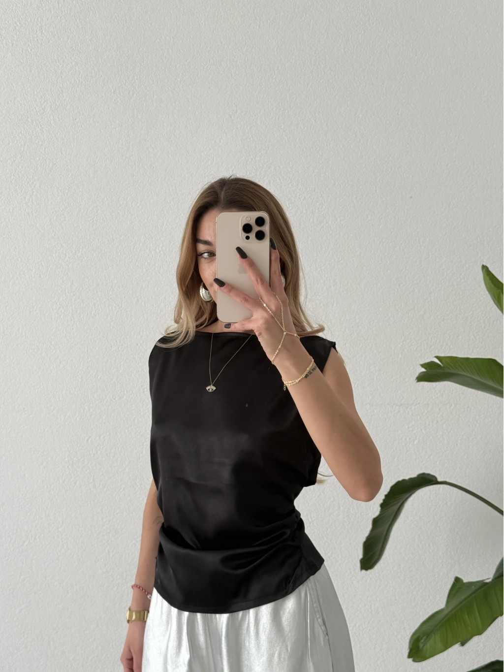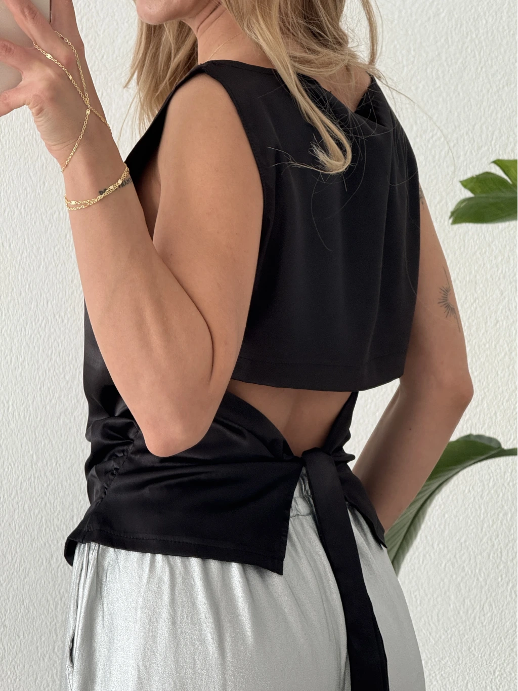 Sırt Dekolteli Bağlamalı Saten Bluz